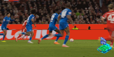 第56分鐘,勒沃庫森連換三人,霍夫曼、泰里耶、科法內(nèi)替補(bǔ)登場(chǎng)