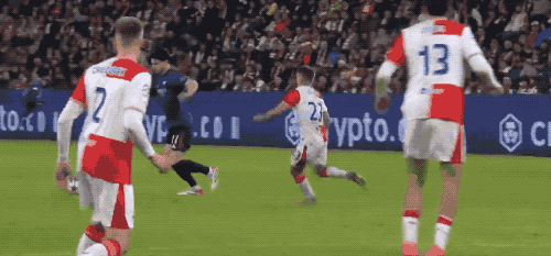 下半場(chǎng)開始不到1分鐘,布拉格斯拉維亞的防線出現(xiàn)了嚴(yán)重的漏人,特羅薩德傳中,梅里諾極其輕松將球打進(jìn)。