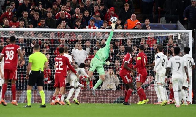 根據(jù)統(tǒng)計,庫爾圖瓦在最近5次面對利物浦時,已經(jīng)完成了恐怖的29次撲救。其中包括2022年歐冠決賽那場名垂青史的9次撲救表演。與之形成鮮明對比的是,近5場對陣皇馬,利物浦的兩位門將合計僅有12次撲救。此役,庫爾圖瓦獲評全場最高的8分,堪稱“雖敗猶榮”的最佳代言人。