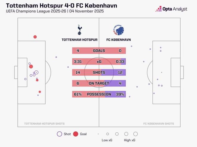 本場對陣哥本哈根,熱刺全隊合計打出3.31的預(yù)期進球值,是球隊自2024年11月面對羅馬(3.74)以來的最高預(yù)期進球數(shù),這已經(jīng)過去了58場比賽。